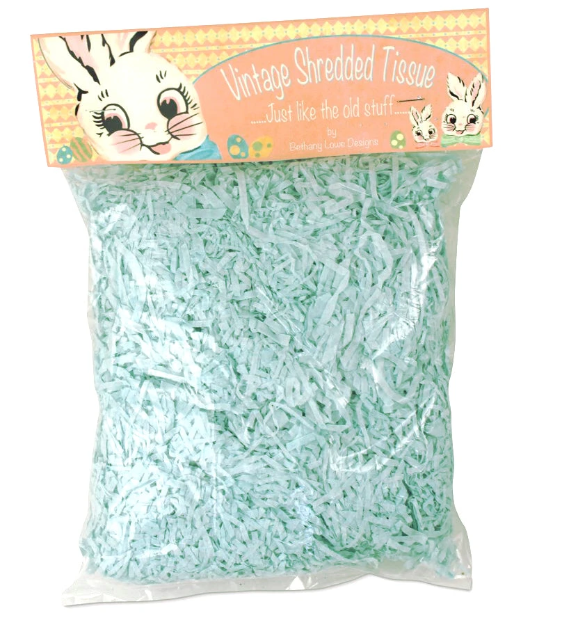 Add an old-school touch to your Easter baskets and decor with this shredded aqua blue tissue paper.