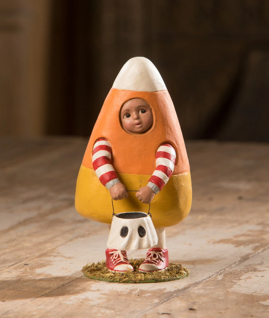 Max has the cutest red sneakers and is holding a ghost bucket. Create a playful Halloween scene with sweet Candy Corn Max figurine.