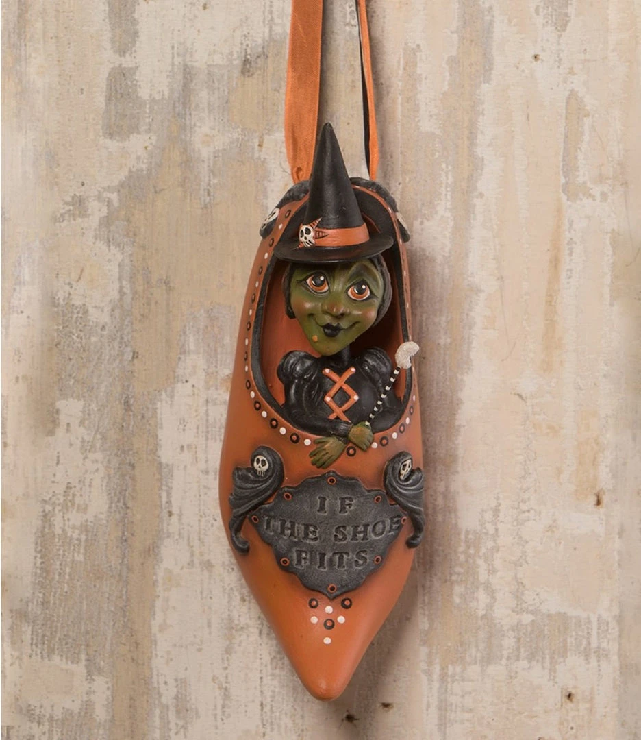 Greet your Halloween guests at the door with a chuckle. This Zany Witch in a shoe will put a twist on an old time message to say,