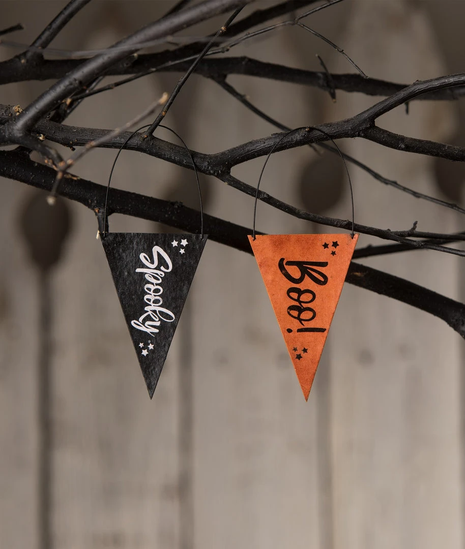 Celebrate Halloween with these SPOOK-tacular orange and black Halloween Banner Ornaments.