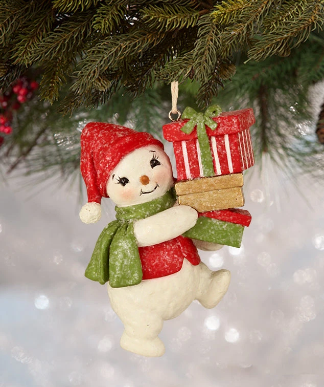 Have yourself a merry little Christmas with this jolly Retro Snowman with Gifts Ornaments.