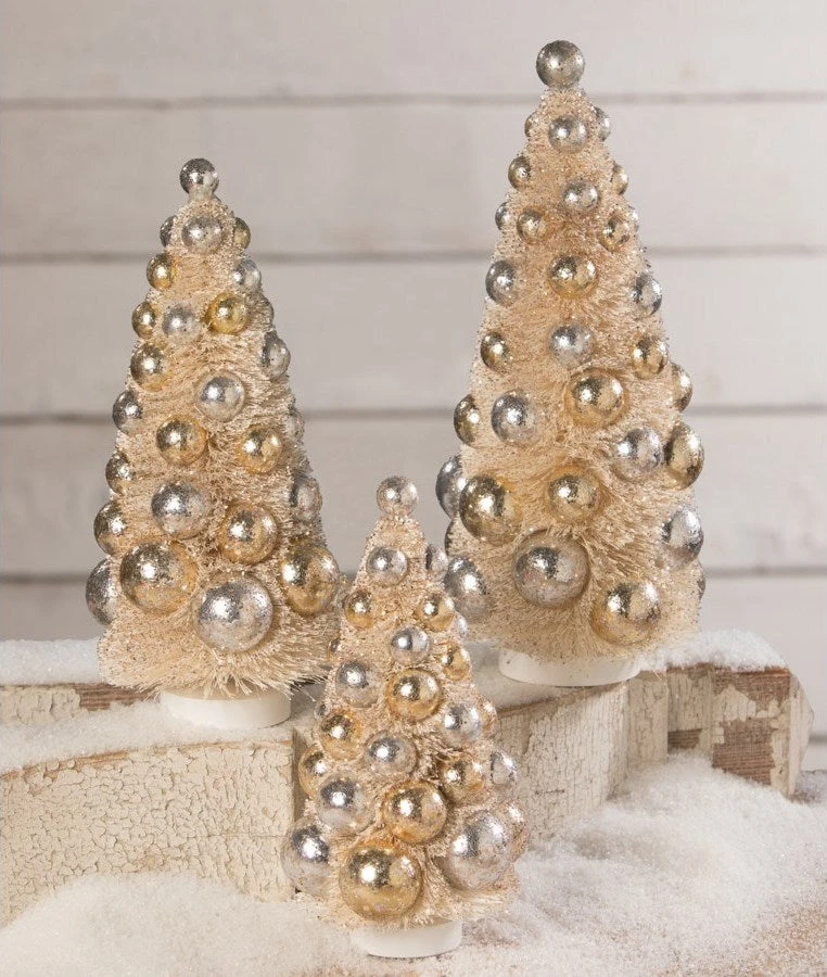 Make the holidays sparkle with these beautiful Silver & Gold Bottle Brush Trees.