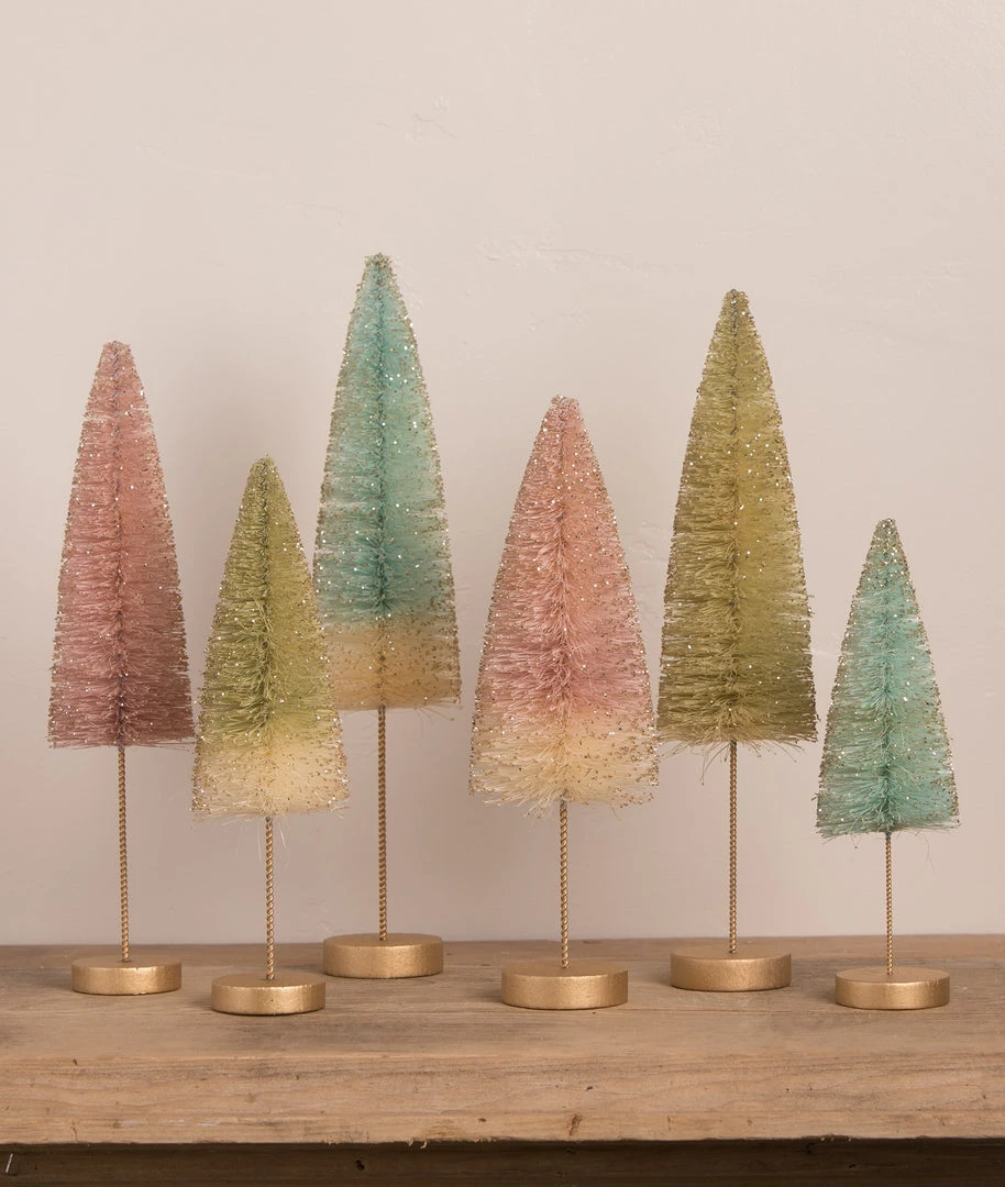 Give your decorating a soft look with these long stemmed Pastel Bottle Brush Trees.