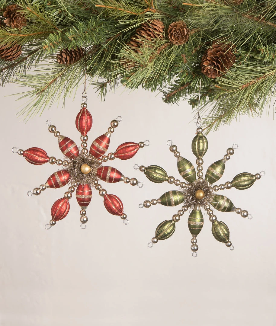 Give your holiday decor an old fashioned Christmas touch with these antiqued red and green Vintage Starburst Ornaments.