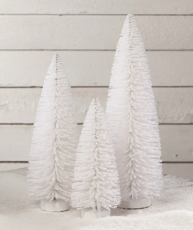 Add a sparkling backdrop to your Christmas decorating with these Winter White Flocked Trees.