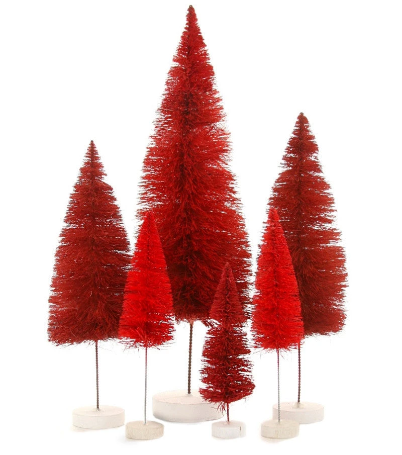 Create a stylish holiday vignette with these textural shades of Red Bottle Brush trees that come in various sizes.