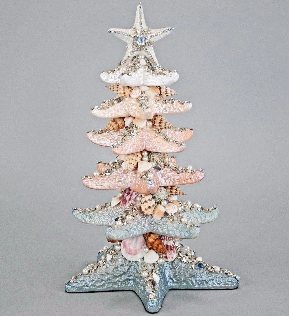 Add unique style to your coastal Christmas decorating with this shell and sequin detailed Starfish Tabletop Tree.
