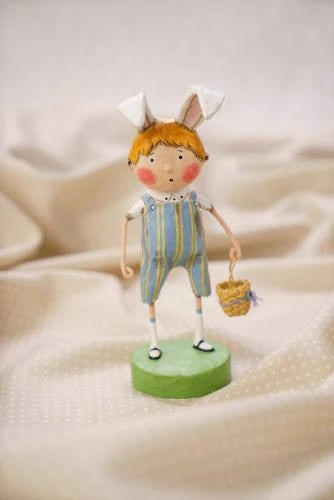 A sweet little boy with bunny rabbit ears can’t wait to get his Easter basket full of Easter eggs, candy and treats.