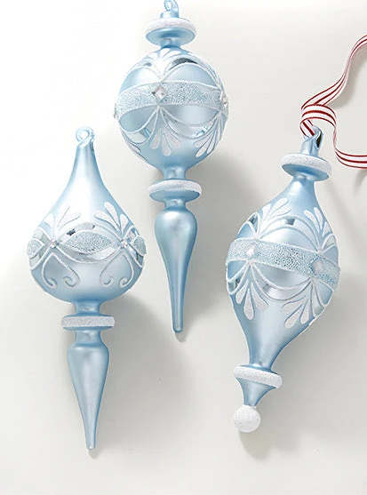 Make your tree beautiful with these designer Vintage Elegance Blue Finial Ornaments.