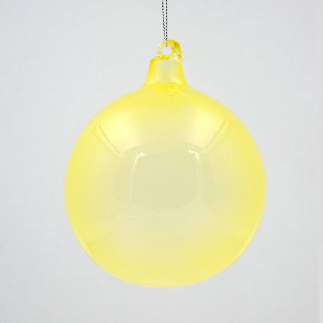 Personalize your holiday decor with these hand-blown Pale Yellow Bubblegum Glass Ball Ornaments by designer Jim Marvin.