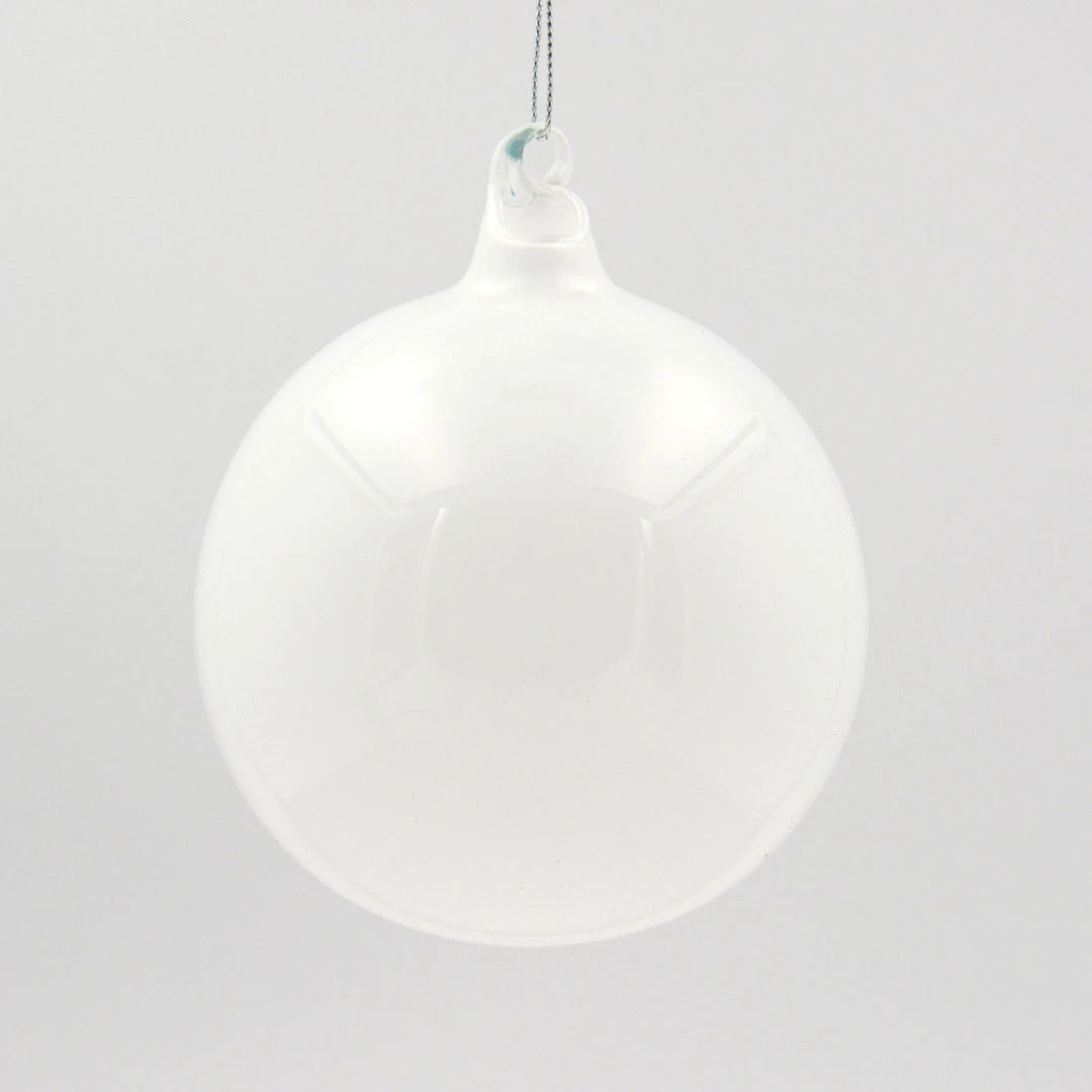 Personalize your holiday decor with these hand-blown Snow White Bubblegum Glass Ball Ornaments by designer Jim Marvin.